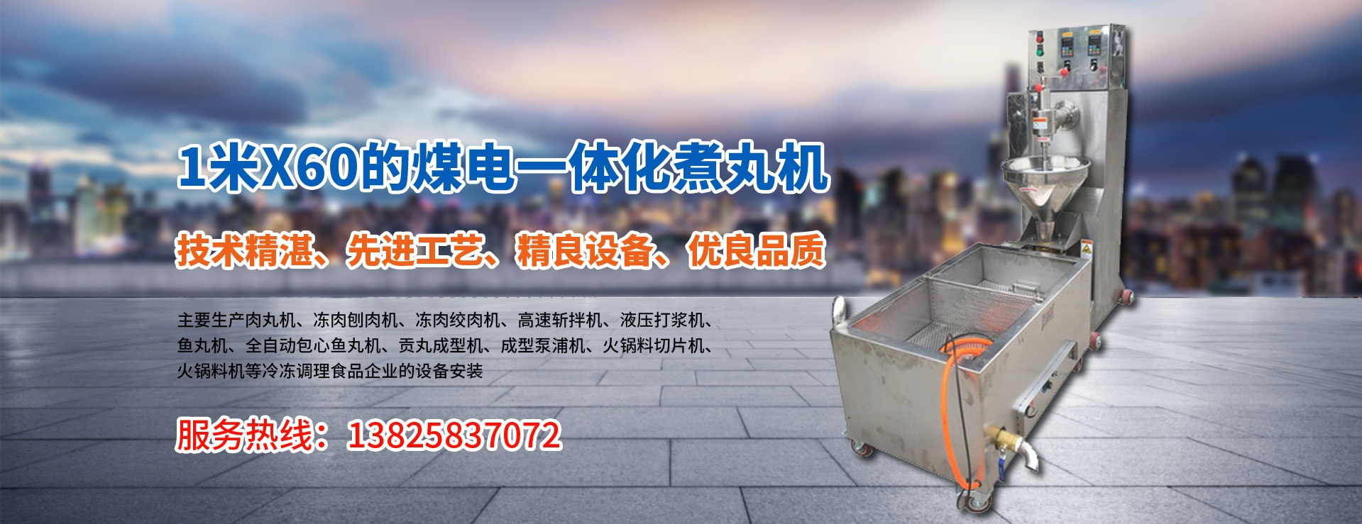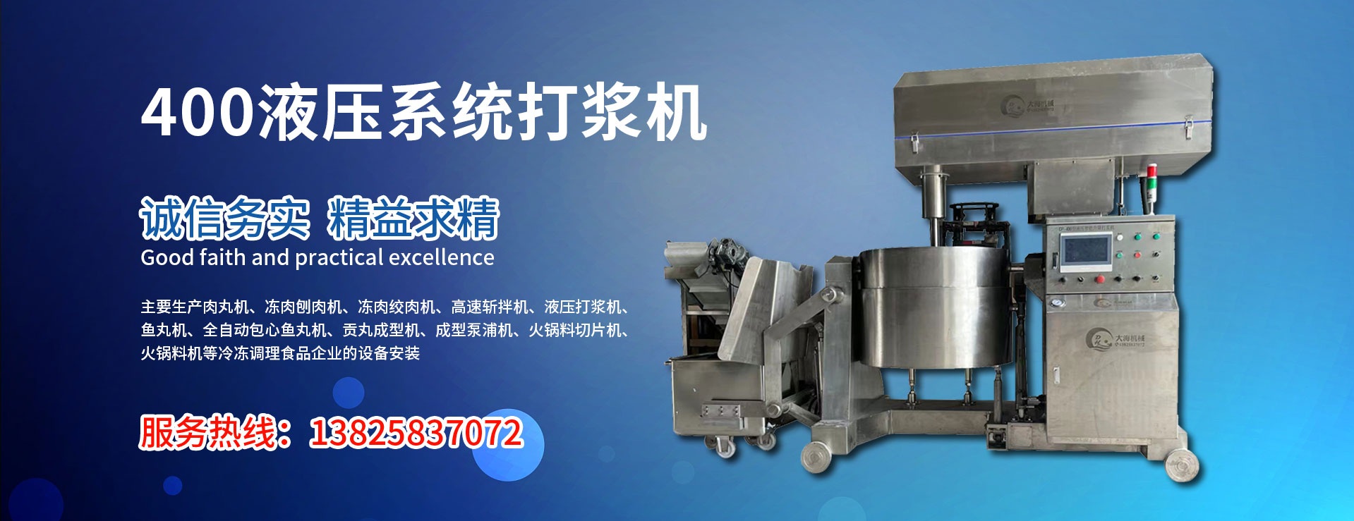 主要生產肉丸機,凍肉刨肉機,凍肉絞肉機,高速斬拌機,液壓打漿機,魚丸機,全自動包心魚丸機,貢丸成型機,成型泵浦機,火鍋料切片機,火鍋料機MORE+